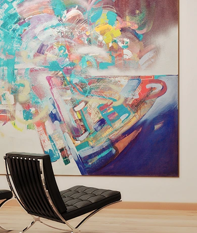 Sie drückt Kreativität durch Formen, Farben und Texturen aus, um die Emotionen des Betrachters zu wecken.